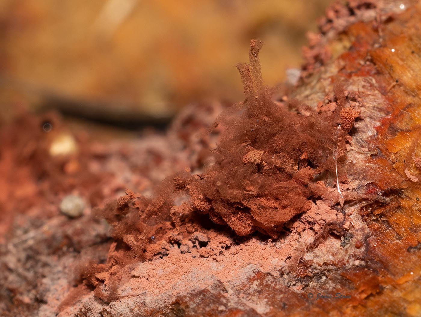 Carnival Candy Slime Mold gets its common name from the resemblance of its fine spore bearing structures