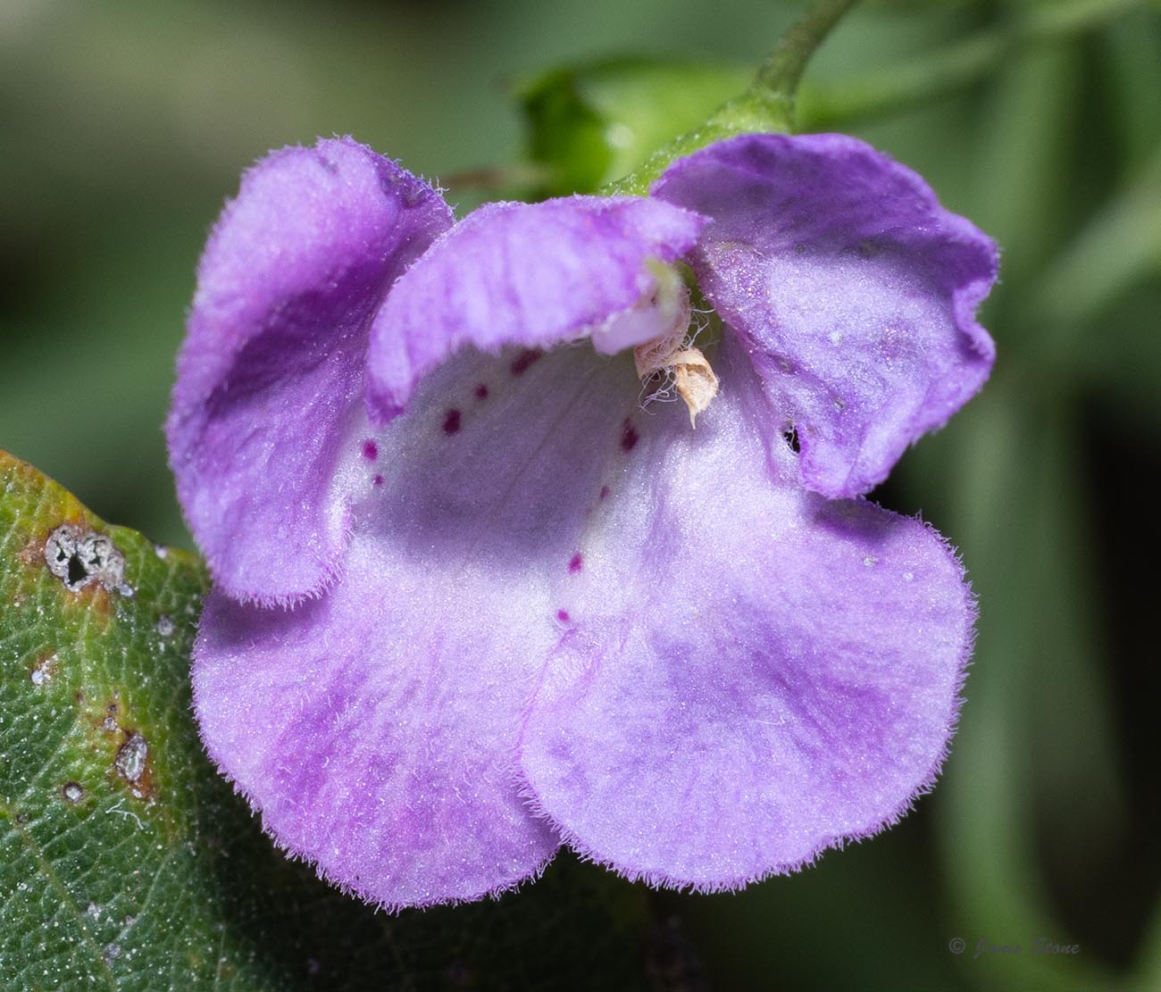 Slender False Foxglove is named for its narrow leaves, which have a purplish pigment. Its purple flowers are held up by pedicels that are more than 2.5 times as long as their calyx, and the upper lip of the corolla is arched forward over the stamens (not erect or reflexed). The corolla throat is glabrous or nearly so.