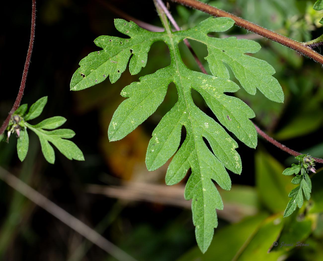 Common Ragweed is native to North America, but has become invasive in other parts of the world. Its wind-blown pollen is highly allergenic, especially in people susceptible to hay fever. It has compound leaflets, which helps distinguish it from other ragweeds in our area. Common Ragweed's seeds persist into winter and are a good source of food for birds.