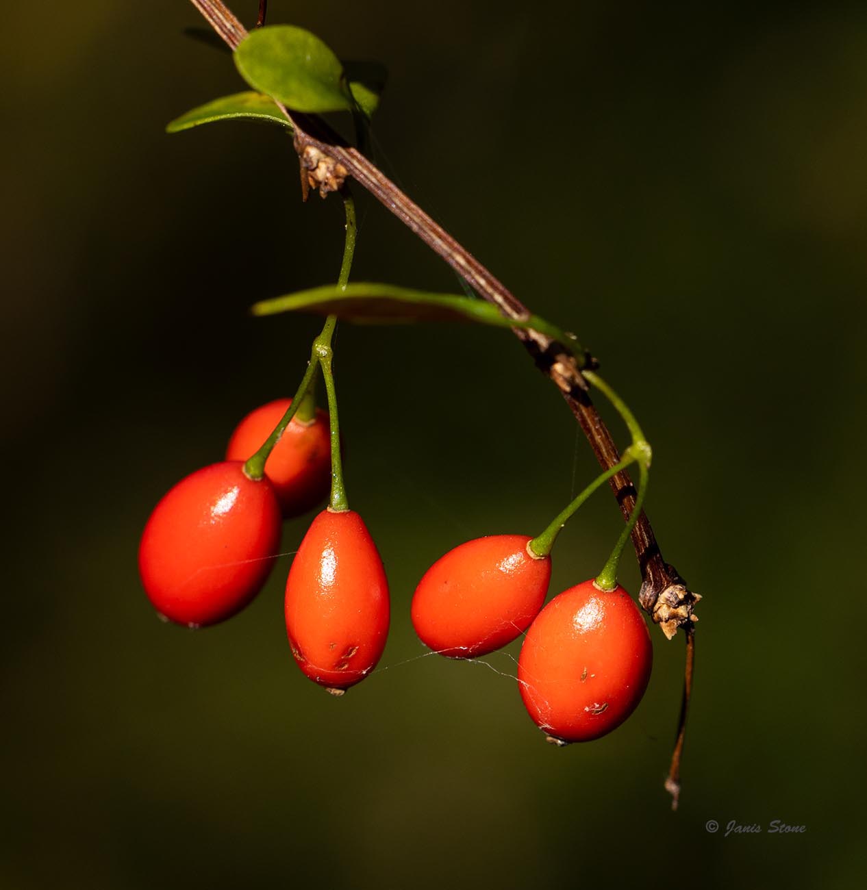 While Japanese Barberry's bright red fruits might look cheerful in winter, its actually a nasty little non-native shrub. Because of its dense, compact form and sharp spines, it provides a safe haven for mice carrying deer ticks infected with Lyme disease. Its leaves are smooth (entire) and it has mostly single thorns. These traits allow it to be readily distinguised from the native American Barberry (Berberis canadensis) which has bristly serrate leaves and mostly trifurcate thorns. Japanese Barberry fruits persist through winter unless eaten by wildlife.