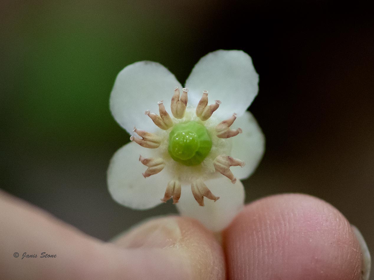 (each of this specimen's leaves are approx. 2-5 cm, and the flower stem is approx. 10 cm high)