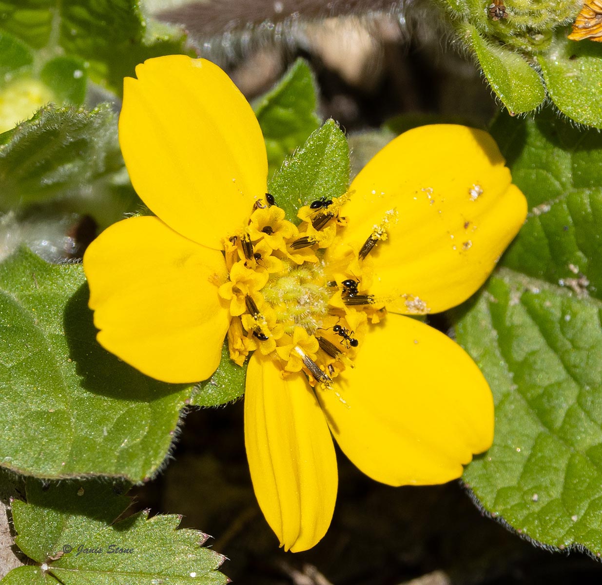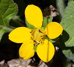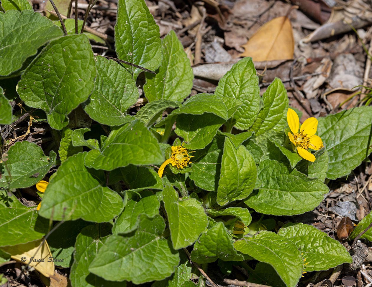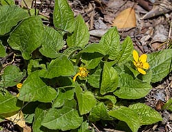 Green-and-gold gets its common name from its vibrant green leaves and bright yellow ray florets. Like all asters, it has a compound flower head (capitula) with many tiny individual disk florets.