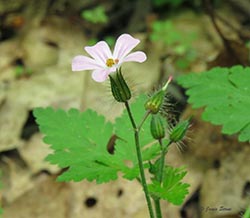 Herb Robert leaves are compound, and its flowers can range from white to pink to red-purple. While it is considered rare, it can be locally abundant at some sites.
