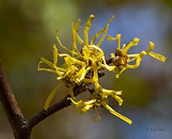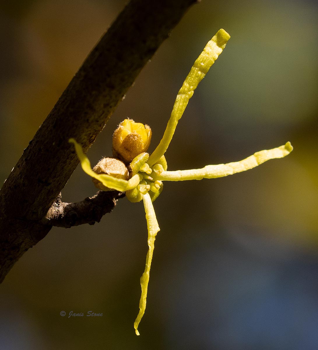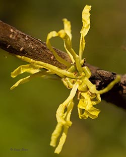 Witch Hazel is an understory shrub that seems to be the last one to bloom in the forest, with its yellow flowers standing out clearly against all the dead leaves. The blossoms have a beautiful faint slightly sweet scent and are pollinated by a moth.