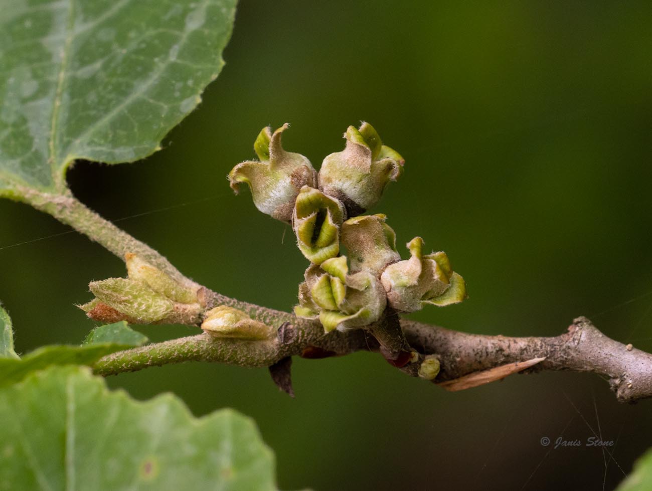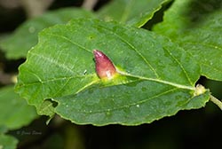 The leaves of Witch Hazel are often used by Witch-hazel cone gall aphids (Hormaphis hamamelidis or H. cornu) as a soruce of food and shelter. It causes the leaf to form a gall, which is light green at first then turns to red.