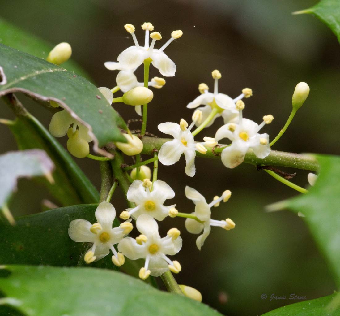 American Holly male flowers typically have 4 stamens; its female flowers often have infertile vestigial stamens.