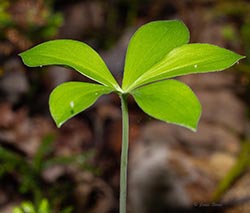 Although superficially resembling Cucumber Root (Medeola virginiana), it bears its single flower above a single set of whorled leaves (usually 5 leaves, but it can have 3-6). Also, its stem is glabrous, unlike Cucumber Root's pubescent and somewhat wiry stem.