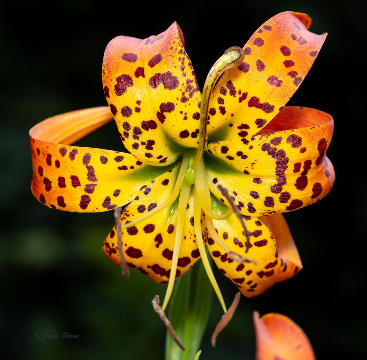 The base of the tepals are greenish, forming a green star at the nectaries.