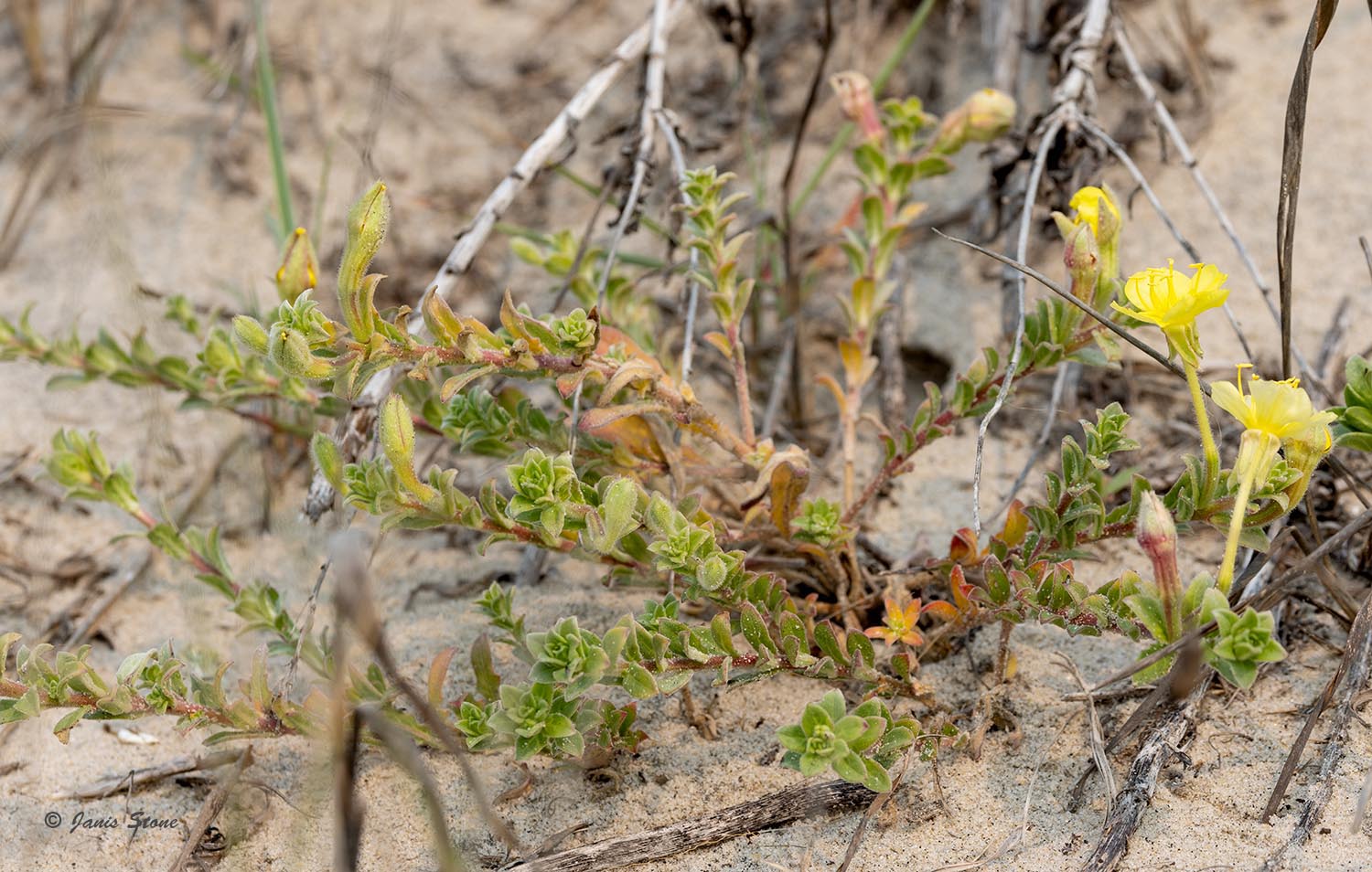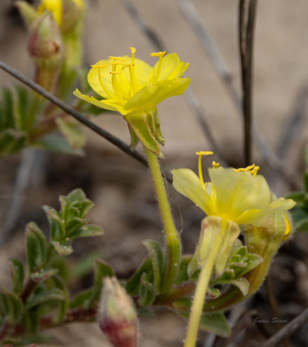 Seabeach Evening Primrose can be found in coastal sand dunes, usually on the grass-dominated foredunes or in open scrub on secondary dunes, or infrequently on dry inland sandhills.