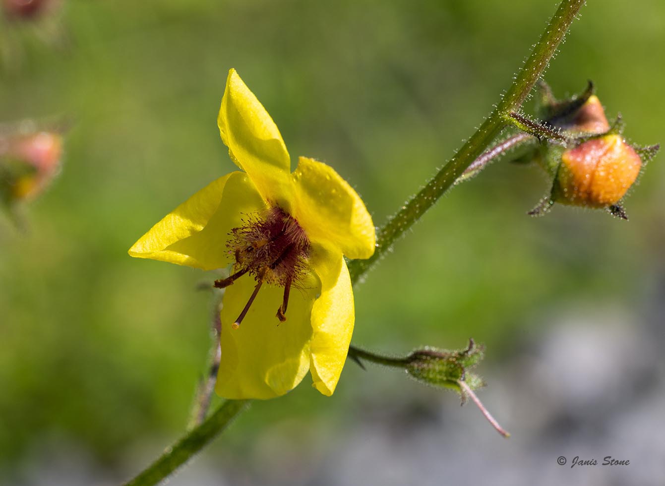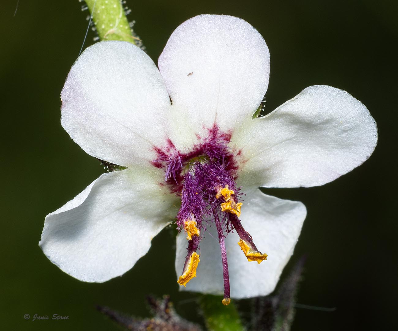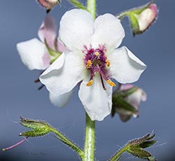Moth Mullein is native of Eurasia and North Africa. Its flowers may be either yellow or white, and usually have a reddish or purple center.